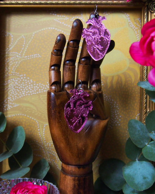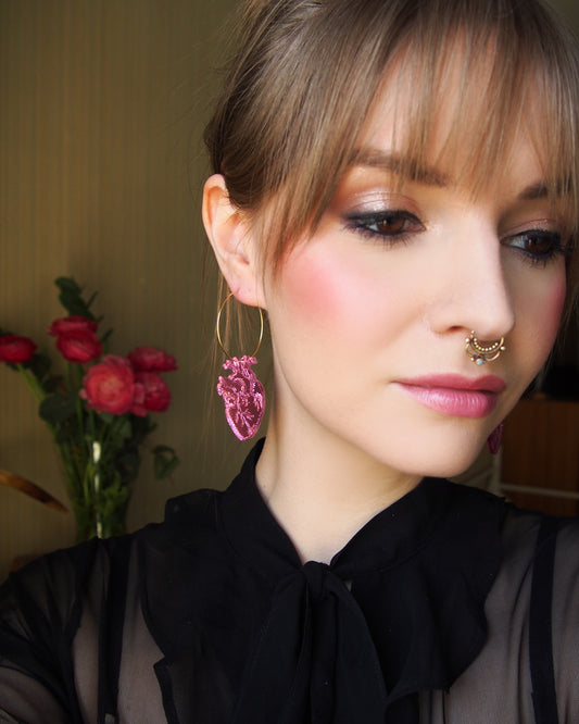 Anatomical heart Hoops, pink Color Mirror Hoops
