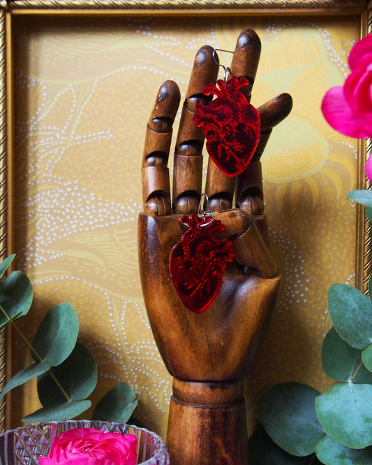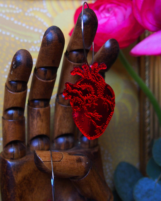 Anatomical heart Hoops, red Color Mirror Hoops