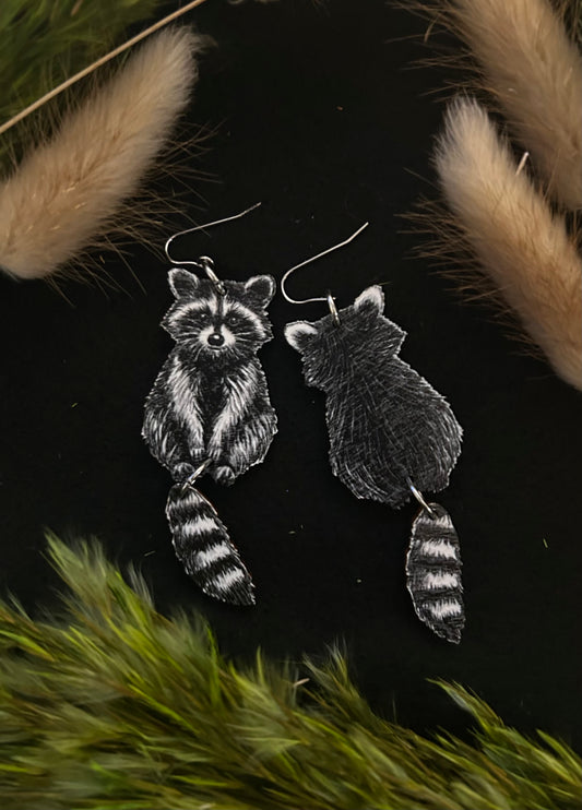 Sunny Earrings, Double Dangle Hook, Black/Wood