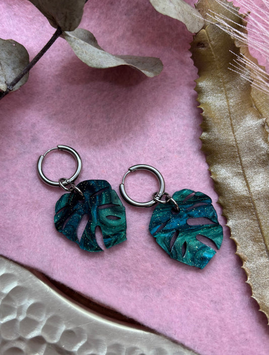 Vera Monstera Teal hoops