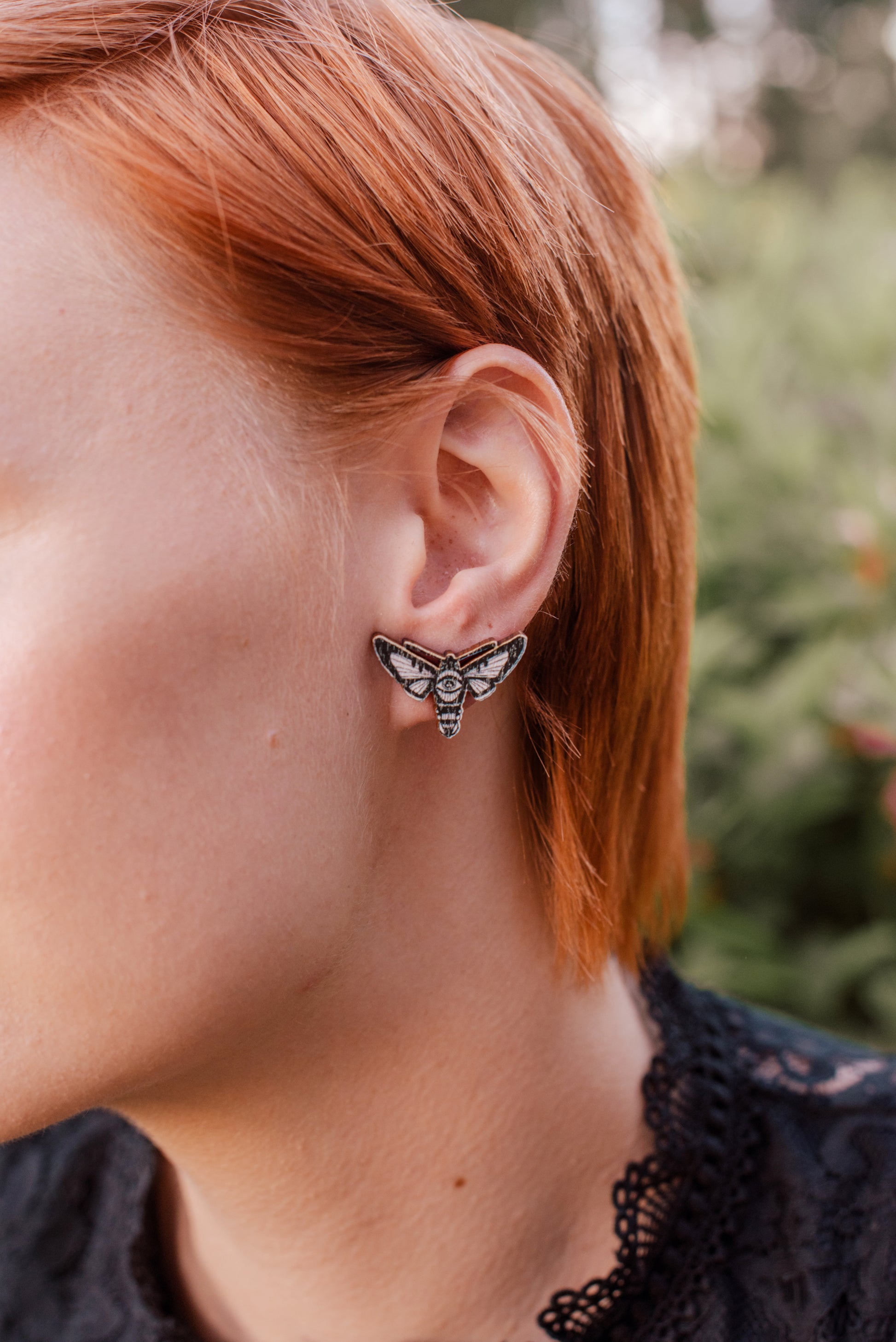 EN: Hawkmoth stud earrings for everyday wear. These earrings are made from finnish plywood.