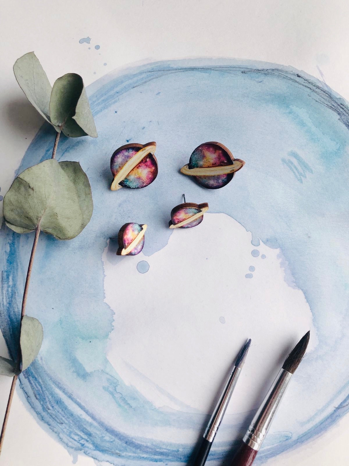 Planets, Stud Earrings, Wood